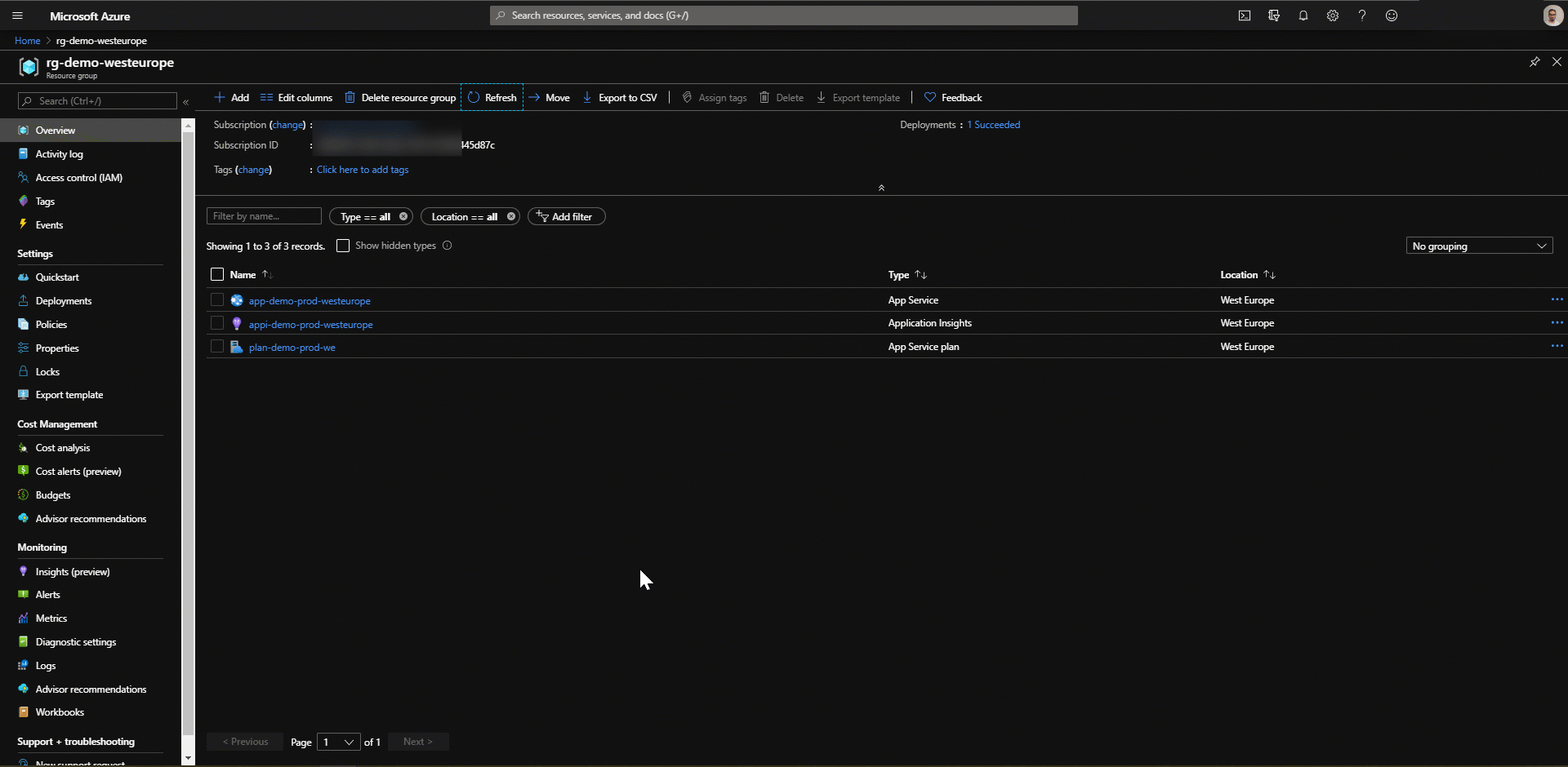 Congrats, you moved the resources to the new subscription like a champ đ.